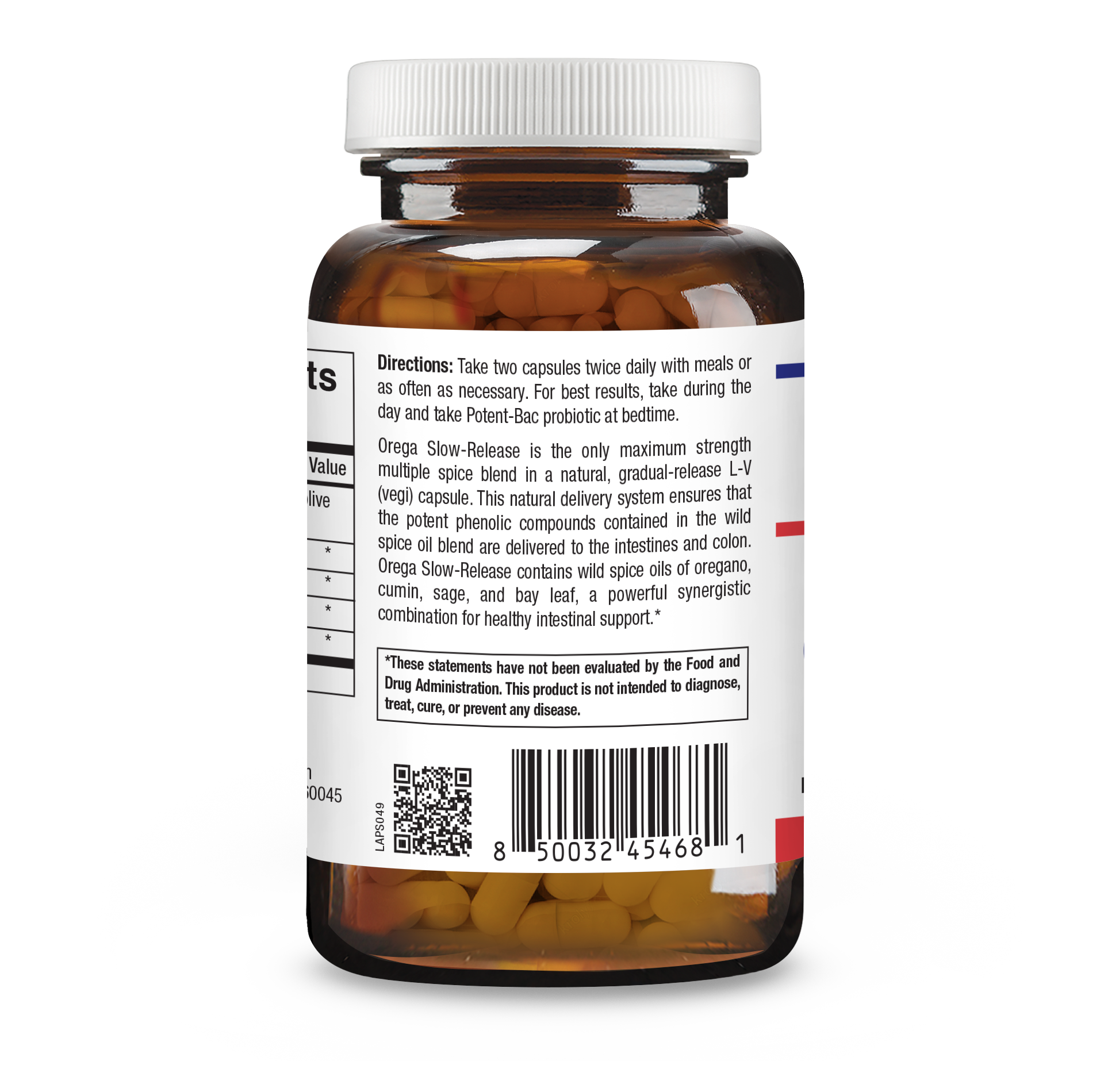 Orega Slow-Release is the only maximum strength multi-spice blend in a natural, gradual-release L-V (vegi) capsule. This natural delivery system ensures that the potent phenolic compounds contained in the wild spice oil blend are delivered to the intestines and colon. Orega Slow-Release contains wild spice oils of Oregano, Cumin, Sage and Bay Leaf – a powerful and synergistic combination for healthy intestinal support.
